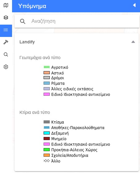 Τέλος, υπάρχει η δυνατότητα της αναζήτησης ενός θεματικού επιπέδου πληκτρολογώντας το στο αντίστοιχο “πεδίο αναζήτησης”.