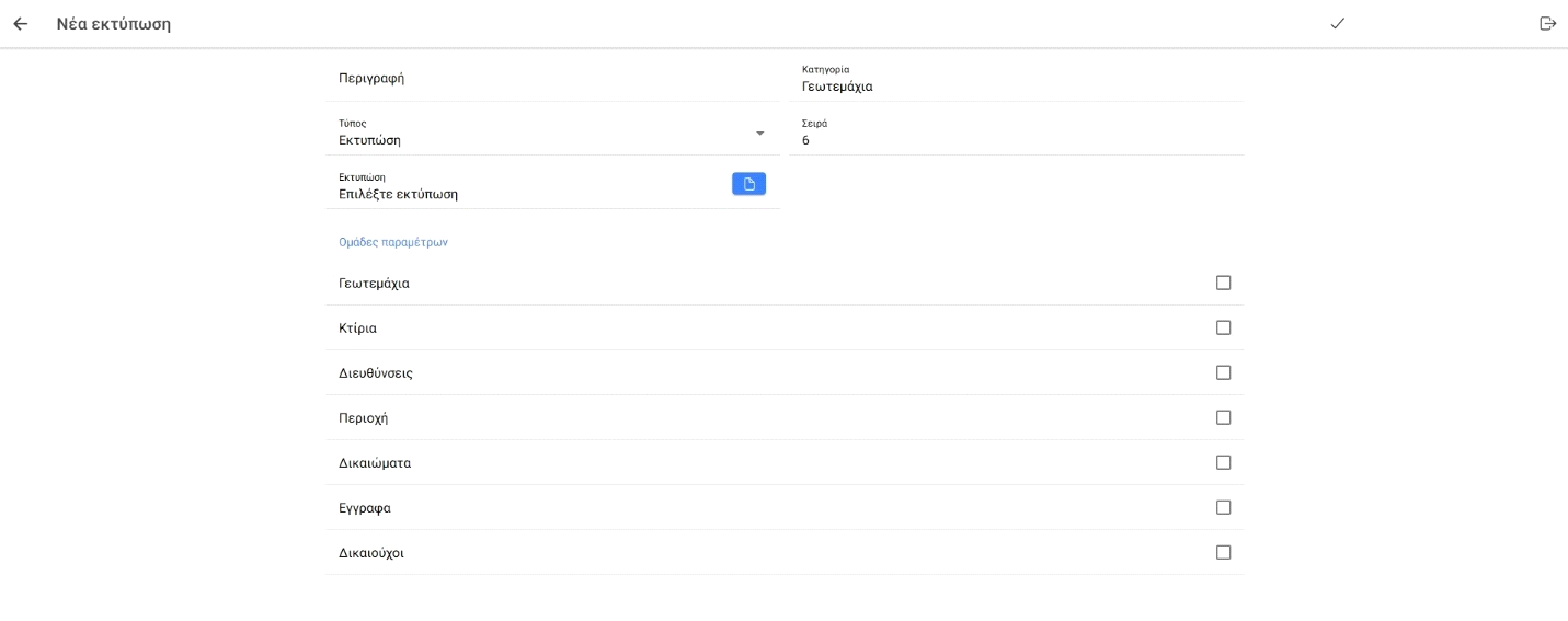 - Ομάδες παραμέτρων που θα περιληφθούν στην εκτύπωση.