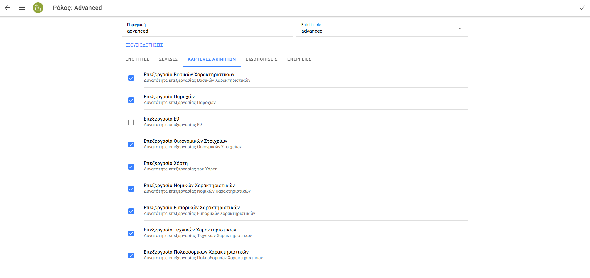 Στην επιλογή «Ρόλοι», ο διαχειριστής μπορεί: